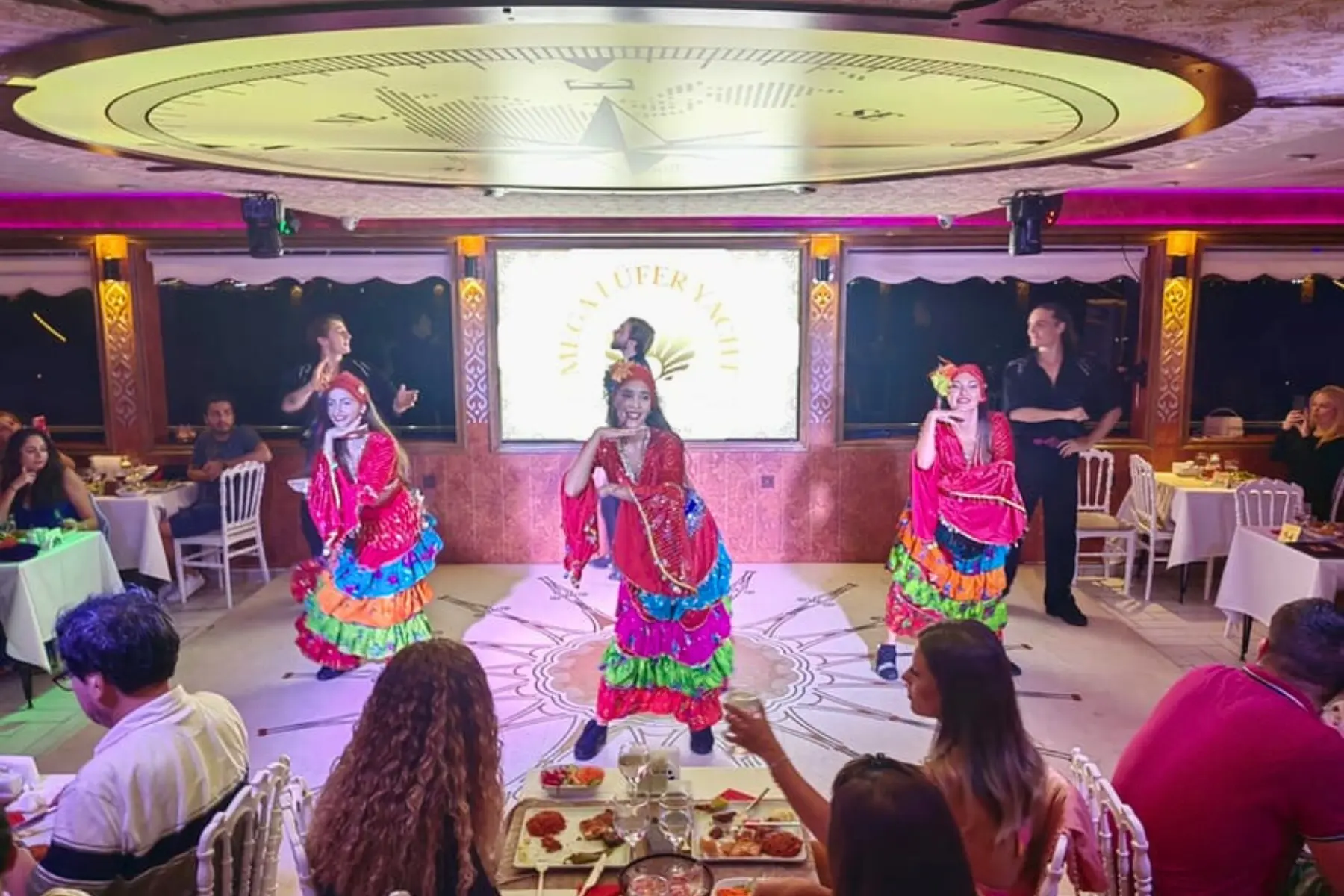 Our program starts with typical Turkish songs while you taste the delicious foods. A little while, once the lively timbres begin to catch you, our Professional Folklore Team will present a potpourri of the most famous Anatolian Dances, Little before you find your performance of Belly Dance Show will enchante the night. We Promise, you will ask to stay more once we will be back at the harbour around midnight